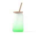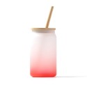 Vaso de cristal borosilicato efecto hielo degradado a color. Tapa y pajita de bambú. Capacidad 350 ml. Idóneo vaso con diseño de color degradado perfectos para tu negocio.