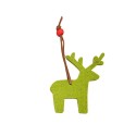 Adorno navideño de fieltro. Disponible en tres diseños: copo de nieve, árbol y reno. Todos los diseños se presentan con cordel marrón y cuenta roja en su extremo.
