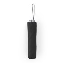 Paraguas plegable con funda a juego. Mango, varillas y contera plateados. Cierre con velcro y apertura manual. Diámetro 95.