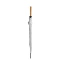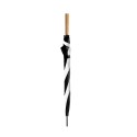 Paraguas con mango en madera y apertura automática. Varillas y terminaciones en negro. Cierre con velcro.