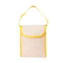 Bolsa nevera de papel laminado, con interior isotérmico de aluminio y espuma aislante de 2 mm. Asa de 60 cm. y solapa con cierre de velcro. Ribete de la bolsa y asa en color a juego.