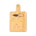 La tabla de cortar de bambú incluye un mango para un manejo cómodo. Incluye un cuchillo de acero inoxidable especial para quesos, ideal para preparar y servir con elegancia.