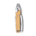 Multiherramienta elaborada de acero inoxidable con una empuñadura de bambú, ofreciendo 5 funciones esenciales: navaja, sierra, alicates, abridor y destornillador. Perfecta para actividades al aire libre y uso doméstico, proporciona versatilidad y durabilidad. Su diseño compacto es fácil de transportar y almacenar, siendo ideal para aventuras al aire libre, trabajos de bricolaje y emergencias en el hogar.