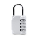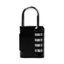 Candado con combinación de 4 dígitos. Cuerpo y asa de acero inoxidable.
