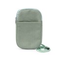 Portamóvil realizado en tejido de pana. Compartimento principal con cierre de cremallera a juego. Bolsillo exterior. Incluye cinta de transporte a juego.