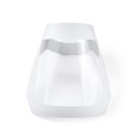 Pantalla facial reutilizable flexible y ligera. Realizada en cartón laminado blanco y PET. Fácil de personalizar. Cierre ajustable con velcro negro.Acolchado de goma espuma para un cómodo ajuste a la frente. Diseño contra salpicaduras.
