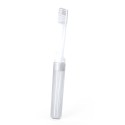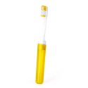 Cepillo de dientes constituido por dos piezas ensambladas entre si para obtener un cepillo completo. Formato viaje con capucha translúcida y cerdas bicolor a juego con las dos partes del cepillo.