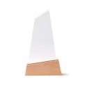 Trofeo de cristal de diseño náutico con base de bambú. Incluye estuche de presentación en diseño kraft.