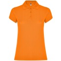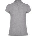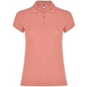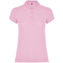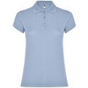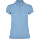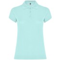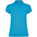 Polo de mujer de manga corta. Cubrecosturas reforzado en el interior del cuello. Cuello y ribete de manga acanalado. Costuras laterales y corte ajustado. Tapeta fina con tres botones. Aperturas en los laterales del bajo.