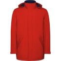 Parka acolchada de tejido impermeable. Cuello alto con capucha plegable y cierre de velcro. Cremallera central a tono con solapa. Bolsillos laterales con cremallera y tapeta fija. Bolsillo interior con cierre de velcro. Puños ajustables con trabilla de velcro. Acceso interior para reprocesos en espalda y pecho izquierdo.