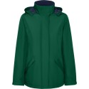 Parka acolchada entallada de tejido impermeable para mujer. Cuello alto con capucha plegable y cierre de velcro. Cremallera central a tono con solapa. Bolsillos laterales con cremallera y tapeta fija. Bolsillo interior con cierre de velcro. Puños ajustables con trabilla de velcro. Acceso interior para reprocesos en espalda y pecho izquierdo.