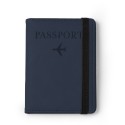 Funda para pasaporte realizada en PU Leather con banda elástica de cierre. 3 bolsillos interiores para pasaporte y documentos, 4 Bolsillos para tarjetas y 2 para tarjetas SIM.