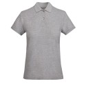 Polo de mujer entallado de manga corta en algodón orgánico certificado OCS. Cuello y ribete de mangas en canalé 1x1. Tapeta con 2 botones. Cubrecosturas reforzado en cuello. Aperturas laterales en el bajo.