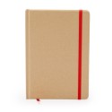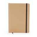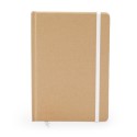Bloc de notas A5. Tapa rígida de cartón reciclado. Marcapáginas y banda elástica a color. 100 hojas lisas.