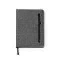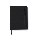 Bloc de notas A5 realizado en RPET. Bolsillo exterior con cierre de cremallera. Incluye marcapáginas. 80 hojas a rayas.