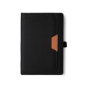 Bloc de notas A5 con tapa rígida de RPET 600D y PU Leather con bolsillo exterior. Incluye soporte para bolígrafo. 80 hojas rayadas de 80 g/m².