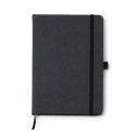 Bloc de notas A5 con tapa rígida elaborada con piel reciclada. Marcapáginas y banda elástica de cierre. Cuenta con 100 hojas a una línea.