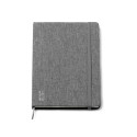 Bloc de notas A5 con tapa rígida de RPET. Marcapáginas y banda elástica a juego. Bloc de notas con 80 hojas.