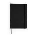 Bloc de notas A6 con tapa rígida de polipiel. Marcapáginas y banda elástica. 100 hojas.