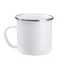 Fantástica taza metálica esmaltada con borde plateado, con capacidad de 380 ml y recubrimiento especial para sublimación, de estilo retro. Composición: Metal Observaciones: Presentación en caja blanca.