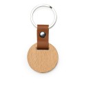 Llavero de madera natural en dos formatos con terminaciones en elegante polipiel. Composición: Madera natural. Observaciones: Dos formatos: redondo (0,5 x 3,8 cm) y oval (3 x 6 x 0,5 cm).