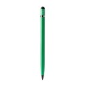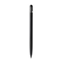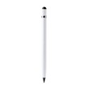 Lápiz con cuerpo de aluminio reciclado y goma integrada en el extremo. Punta de grafito de escritura infinita reemplazable. Con detalle en acabado cromado y capucha transparente. Con puntero táctil en el extremo extraíble.