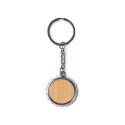 Llavero abridor diseño de chapa. Acabado cromado y superficie de bambú.