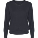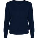 Acabado en punto de canalé 1x1 al tono en escote, puños y bajo.