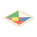 Puzzle Tangram realizado en madera natural con 7 piezas a color. Ideal para el desarrollo de habilidades.