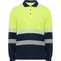 Polo técnico de alta visibilidad en manga larga. · Cuello y puño en punto canalé 1x1. · Dos cintas reflectantes segmentadas en torso y manga. · Tapeta con 3 botones a contraste. · Tejido anti enganches y fácil secado.