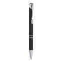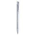 Bolígrafo con cuerpo de aluminio y pulsador en acabado cromado. Carga jumbo de tinta azul.