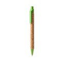 Bolígrafo línea nature con cuerpo de corcho. Punta, pulsador y clip en fibra de trigo. Tinta azul.