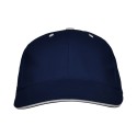 Gorra 6 paneles con sándwich a contraste. 6 orificios de ventilación bordados a contraste. 6 líneas pespunte en visera. Cinta antisudoral en el interior. Cierre velcro.
