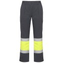 Pantalón multibolsillos de invierno de alta visibilidad. · Cinturilla elástica en la parte trasera. · Dos bolsillos con tapeta en la parte trasera y con cierre de velcro. · Dos bolsillos en el frontal y dos bolsillos laterales con fuelle y tapeta con cierre de velcro. · Combinado en dos colores y con cintas reflectantes horizontales.