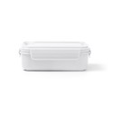 La fiambrera de PP cuenta con una tapa transparente que permite ver su contenido fácilmente. Su compartimento principal ofrece una capacidad de 1,3L, ideal para almacenar comidas completas. Además, incluye dos compartimentos supletorios para mantener los alimentos separados y frescos. Este diseño práctico y funcional es perfecto para llevar almuerzos al trabajo, la escuela o de picnic, asegurando una organización eficiente y una mayor versatilidad en el almacenamiento de alimentos.