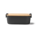 Fiambrera con cuerpo de PP y tapa realizada en bambú con cierre de seguridad. Capacidad de 1L.