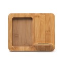 Cargador inalámbrico con marco para fotos. Realizado en bambú.