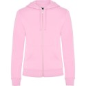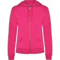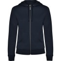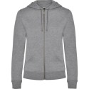 Sudadera de mujer con capucha forrada a tono. Cremallera metálica frontal y bolsillo estilo canguro. Cubrecosturas reforzado en el cuello interior, corte entallado, y punto canalé 2x2 en puños y cintura.