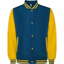 Chaqueta unisex ligeramente acolchada combinada con dos colores. Cuello, puños y bajo en rib 1x1, con dos líneas a contraste. Bolsillos laterales con cremallera. Interior forrado. Botones a presión con acabado de plástico a contraste. Acceso interior en pecho izquierdo y espalda para reprocesos.