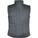 Chaleco laboral multibolsillos con cuello alto. · Cremallera central con trabilla y velcro. · Un bolsillo exterior para móvil en lado derecho. · Dos bolsillos frontales con fuelle y aberturas laterales. · Dos depósitos para bolígrafos. · Un bolsillo interior con velcro. · Bolsillo cremallera. · Bolsillo interior con velcro. · Bajo posterior con faldón. · Ajustador con cierre automático.