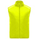 Chaleco técnico ligero de running, con cremallera frontal a tono con protector de barbilla. Ribete elástico en sisa y bajo. Parte inferior de la espalda en tejido micro perforado. Detalles reflectantes en la parte superior, delantera y trasera. Bolsillo con elástico para guardar el chaleco y llevarlo en la muñeca.