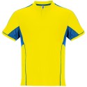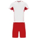 Conjunto deportivo unisex con combinación de tres tejidos, camiseta con cuello mao y apertura mediante broche de presión, interior de la manga en tejido transpirable y paneles laterales y banda superior de manga en tejido control dry. Pantalón corto con cinturilla ajustable y cordones. Parte interior de la pierna y vivos a contraste en tejido control dry.