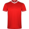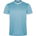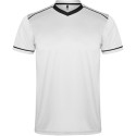 Conjunto deportivo de camiseta y pantalón. Camiseta con doble cuello de fantasía con acabado en pico con cubrecosturas reforzado en el interior. Hombro con adorno de ribete en contraste. Manga corta con apertura acabada en vivo y con ribete de adorno en contraste. Pantalón corto con cintura elástica con ajuste de cordón en su interior y pespunte de seguridad.