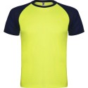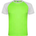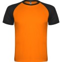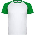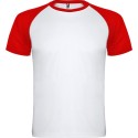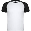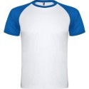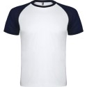 Camiseta deportiva de manga corta estilo ranglan en contraste. Cuello redondo en contraste con cubrecosturas de refuerzo.