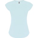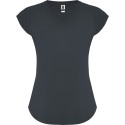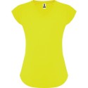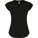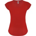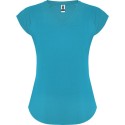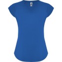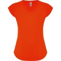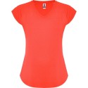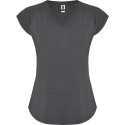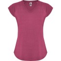 Camiseta técnica multi-deporte de mujer manga corta estilo manga ranglan. Cuello pico. Tejido poliéster con tacto algodón. Corte entallado.