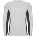 Camiseta técnica combinada, con dos tejidos de poliéster. Manga larga de estilo ranglán. Tejido principal bird´s eye y paneles laterales e interior de la manga con tejido micro perforado. Cuello redondo con cubrecosturas de refuerzo en su interior. Camiseta de tejido confortable y fácilmente adaptable al cuerpo.