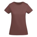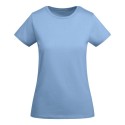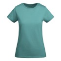 Camiseta de mujer entallada de manga corta en algodón orgánico certificado OCS. Cuello redondo en canalé 1x1. Cubrecosturas reforzado en cuello. Costuras laterales.