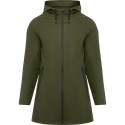 Chubasquero impermeable entallado para mujer. Capucha fija con visera. Cremalleras y costuras termoselladas. Detalles a contraste en color negro. Dos bolsillos laterales con cremallera. Bajo posterior con abertura.