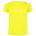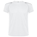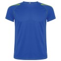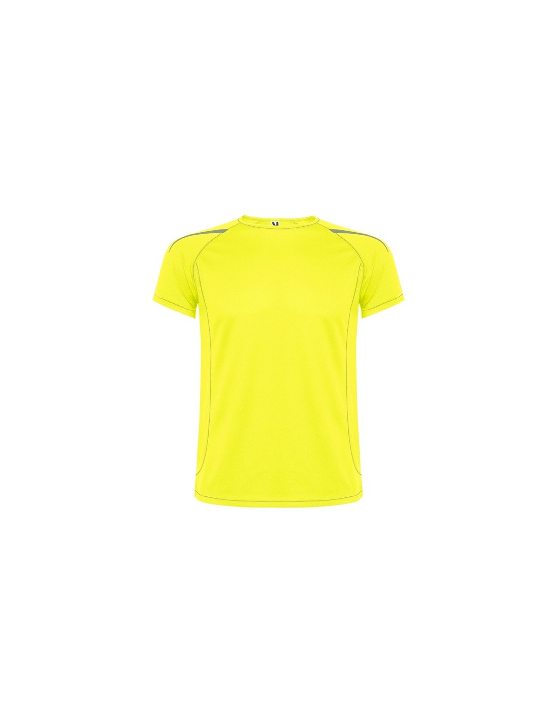 Camiseta técnica en tejido punto liso, de manga corta ranglán, con costuras en contraste en bocamangas, bajo, cuello y laterales. Cuello viveado con el mismo tejido. Tejido transpirable de fácil lavado y secado. Detalles reflectantes, excepto en colores negro y royal, que el detalle es en contraste en color amarillo, no reflectante.