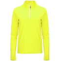 Sudadera técnica de manga larga ranglán para mujer con interior perchado. Cubrecosturas de refuerzo a contraste en el interior del cuello. Media cremallera invertida a tono con detalle reflectante. Puños con apertura para pulgar. El patronaje de la espalda es ligeramente más largo que el delantero. Detalles reflectantes en las espalda.